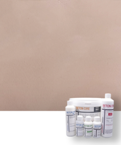 Het basis pakket bevat: Beton Ciré mortel + pigment + Resin. Uiteraard kan je dit uitbreiden.