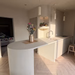 Lavasteen in de kleur Seakale breng je met de hand aan met een spaan. Dit geeft je volledige controle over de structuur en uitstraling, met een matte of zijdeglans betonlook in een lichte, neutrale grijsgroene tint. Het is een 2-componentensysteem waardoor het extreem hard, toch flexibel en volledig waterdicht is.